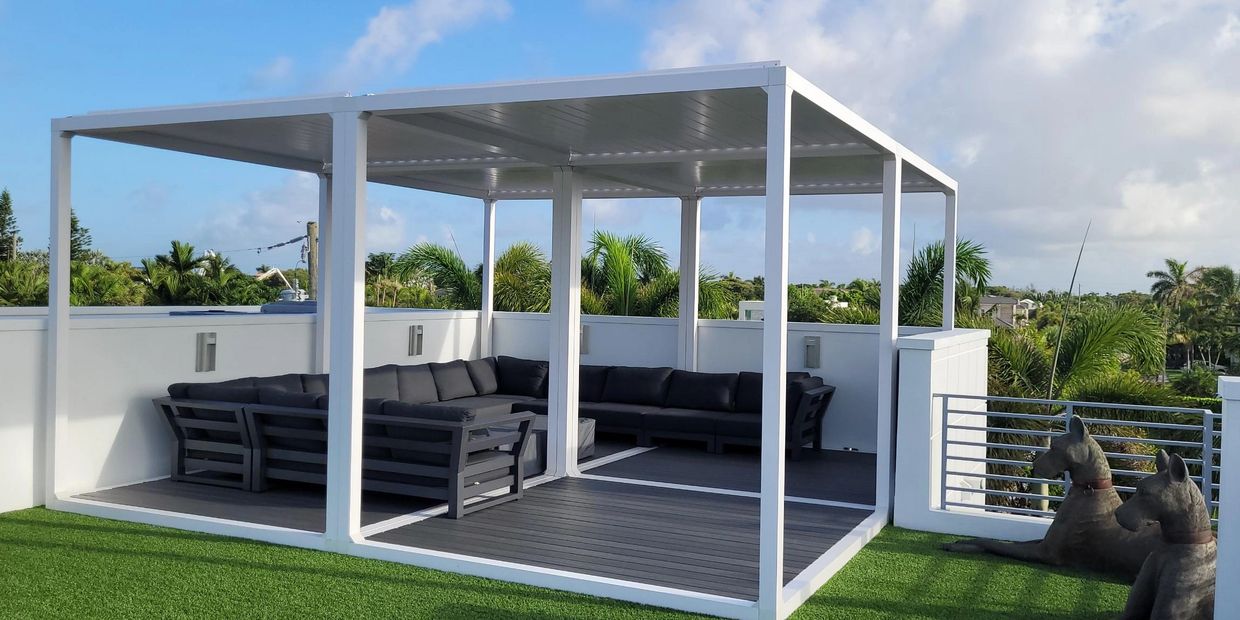 K-BANA™’s manual louvers let you customize the light, while integrated gutters keep drainage out of sight. Available in three standard sizes that can be mixed for endless possibilities, K-BANA™ is perfect for any home or business.